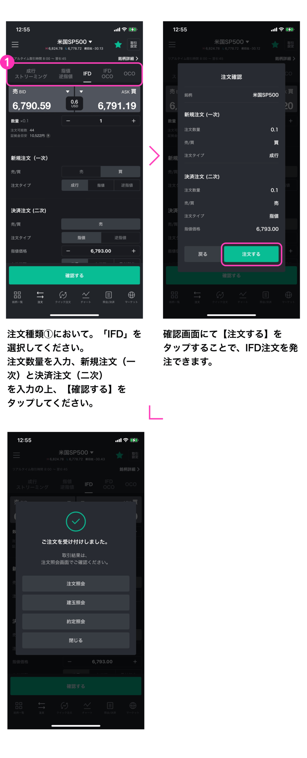 LINE CFD アプリ操作マニュアル – IFD注文 2025年12月17日 目次へ戻る IFD注文 注文する際に、新規注文(1次注文) と決済注文(2次注文)を指定して発注する注文方法です。 目次へ戻る
