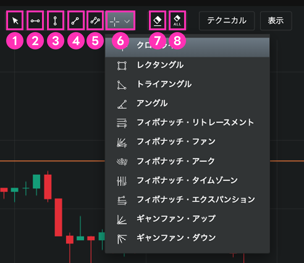 7)テクニカルチャートを選択ができます。