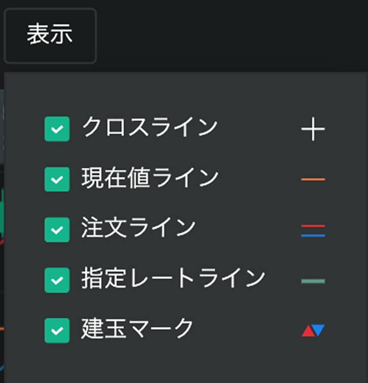 【表示】ボタンを選択することで、チャート上に次の表示を行うことができます。