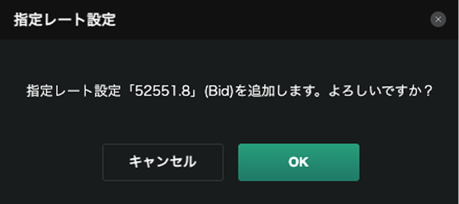 指定レート登録を選択すると、次の確認画面が表示され、【OK】 をク選択すると、指定レート通知に登録できます。