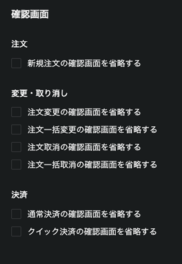 注文を行う際に確認画面を非表示にすることができます。