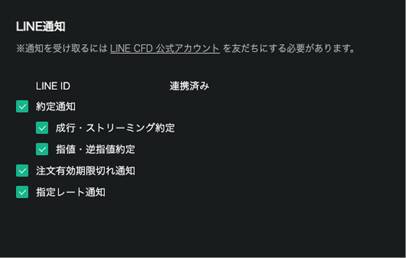 チェックを入れるとLINEで通知を受け取れます。
