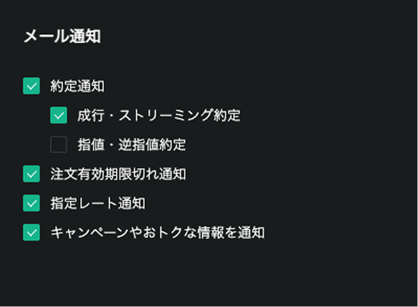 メールを受け取る通知の種類を設定できます。