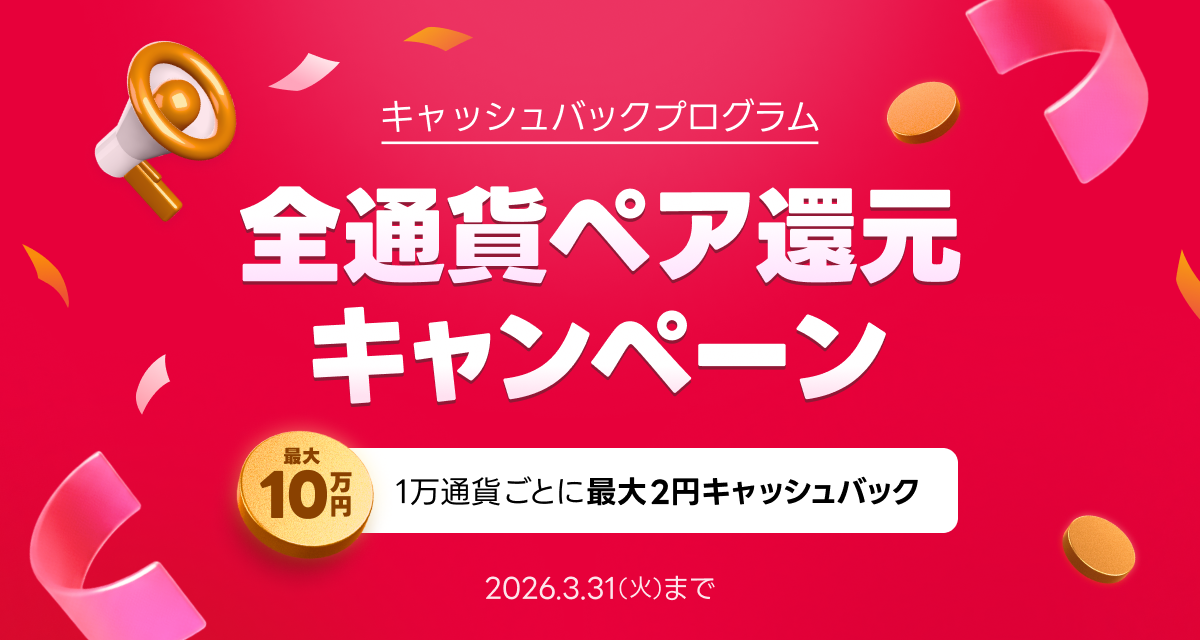 2026年4月以降:当月の取引数量に対し、1万通貨あたり1円または2円を還元します