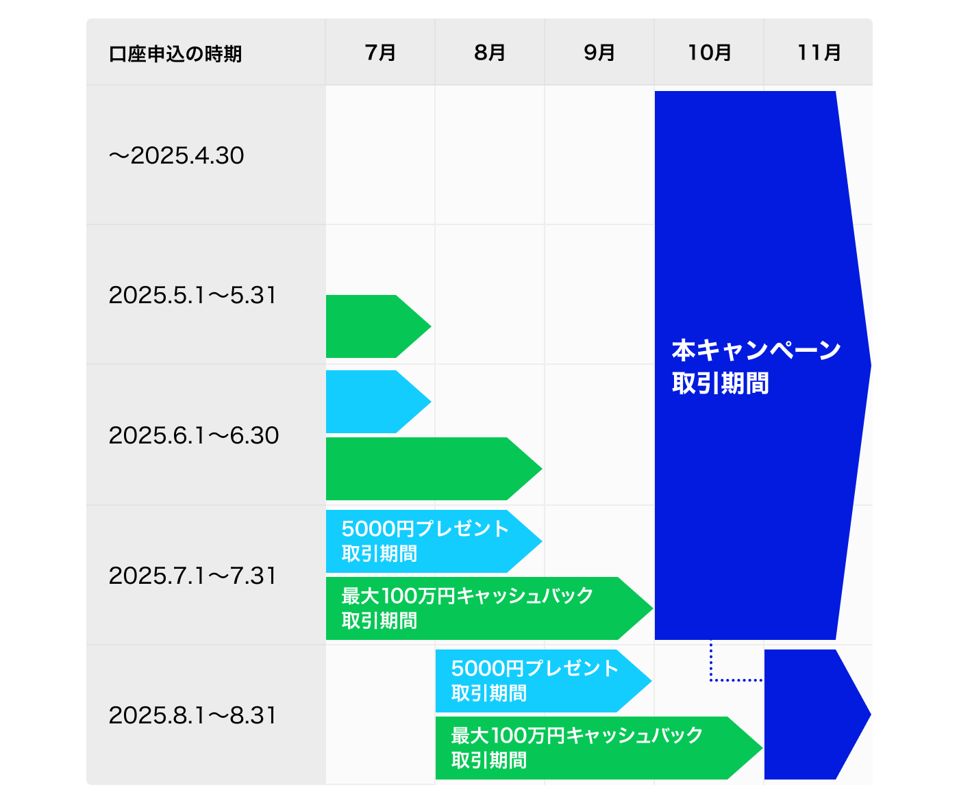 | 口座申込日 | 集計対象となる期間 |