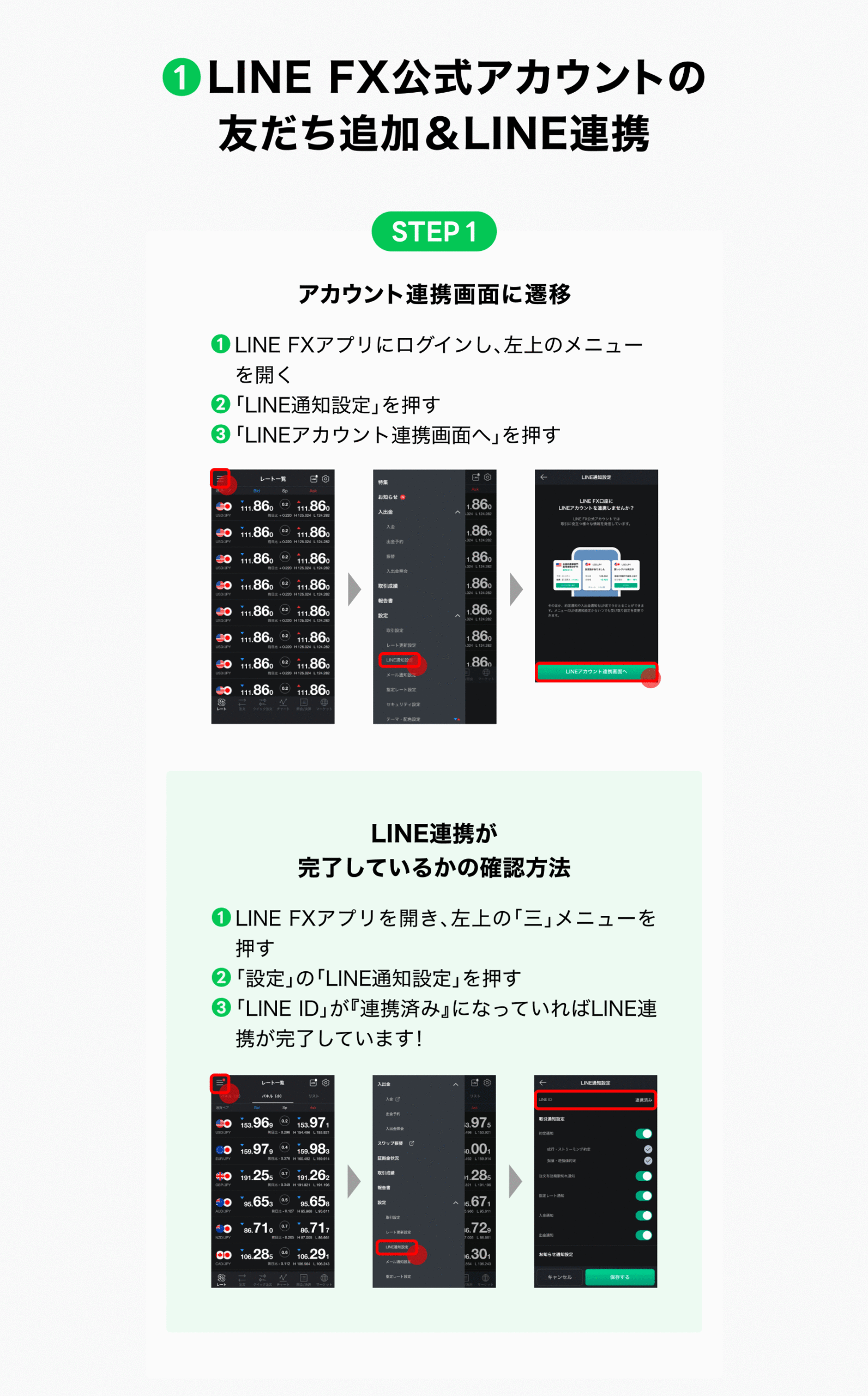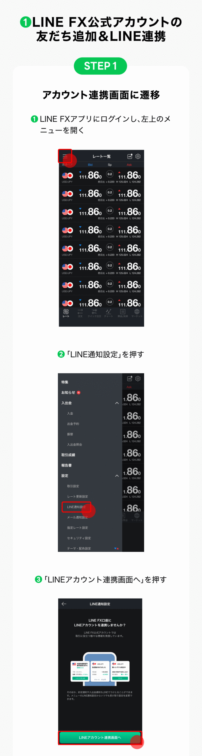 - LINE FX公式アカウントの友だち追加&LINE連携