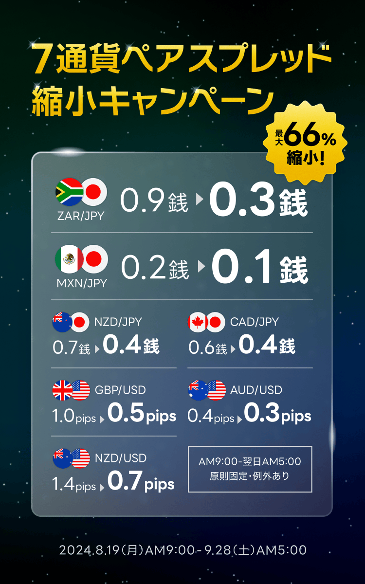 - 本キャンペーン終了後も、本キャンペーン期間中スプレッドを通常の広告スプレッドとしてサービスを提供する可能性があります。その場合は、本LPにて事前に告知を行います。