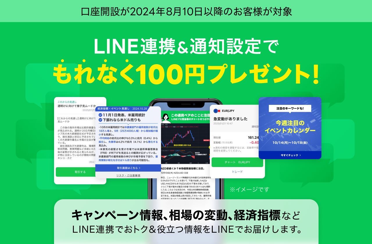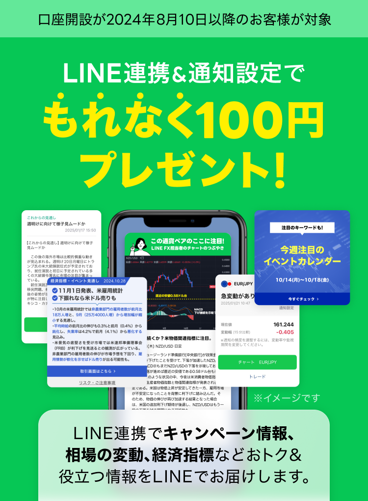 - 特典付与までに、LINE FX口座を閉鎖されている又は閉鎖申請がされている場合