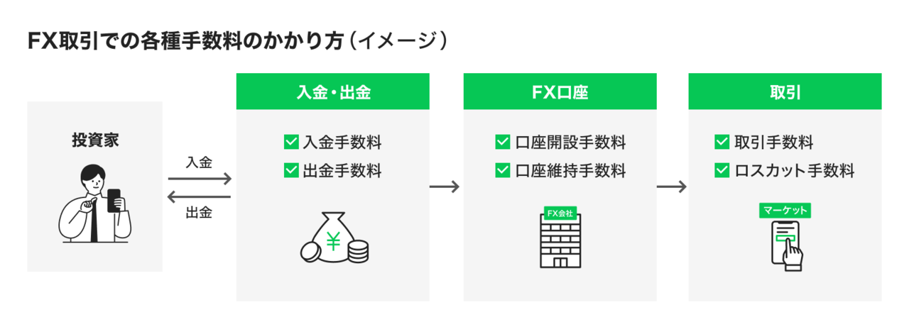 FXの手数料は、口座、入金・出金、取引にかかる?