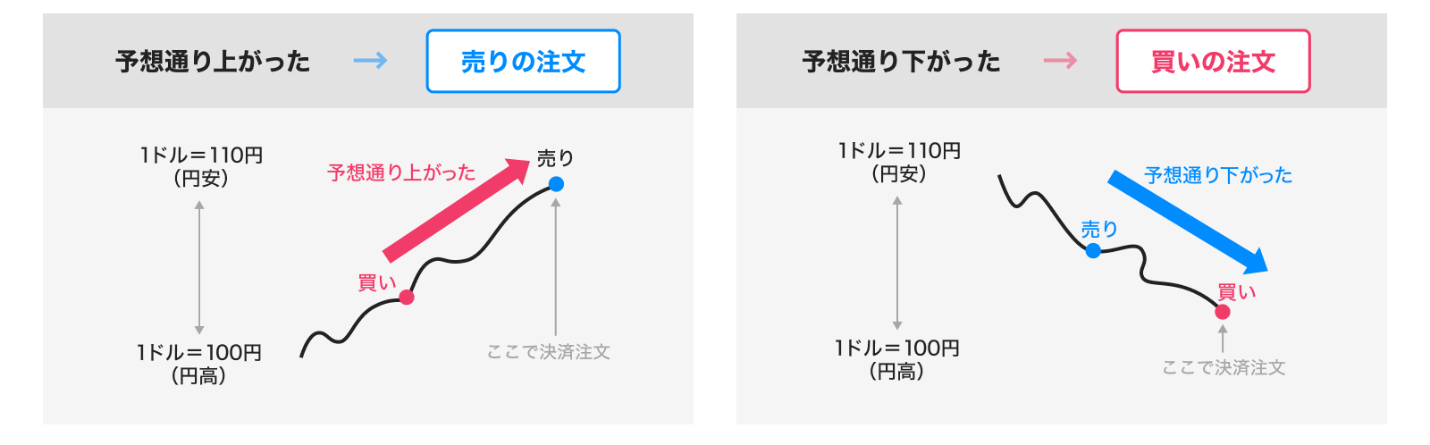 ・新規で売りの注文を出した場合、決済は買いの注文