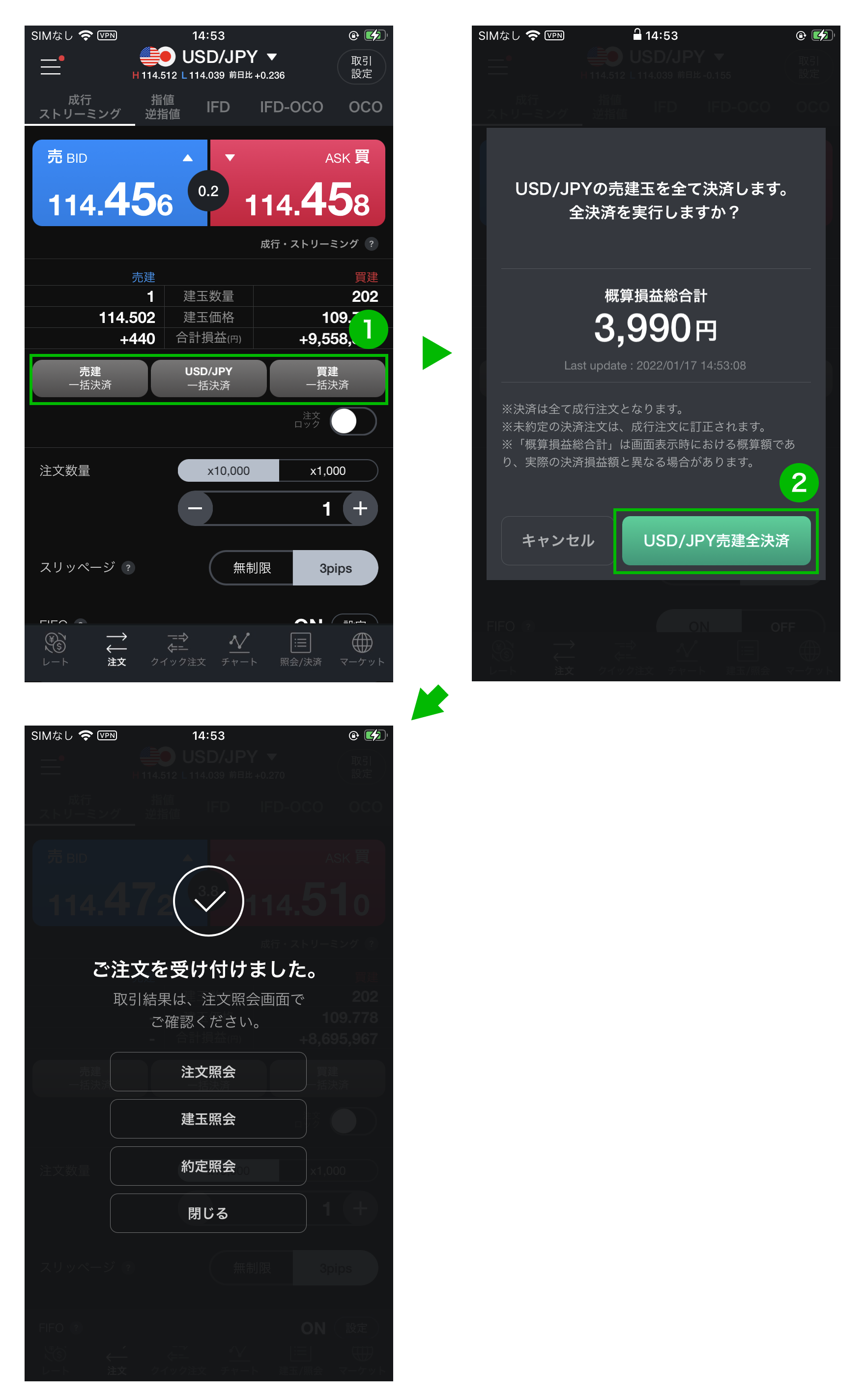 ・保有している全ての建玉を一括で決済する全決済