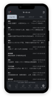 みんかぶ社、DZHフィナンシャルリサーチ社、ダウ・ジョーンズ社の3社から充実したリアルタイム・ニュース配信サービスを提供しています。尚、ニュースを閲覧する上では「速報」「要人発言」「経済指標」「今日の為替」「株式」「商品・債券」の6つのカテゴリから、投資判断に必要な情報だけをご確認することも可能です。