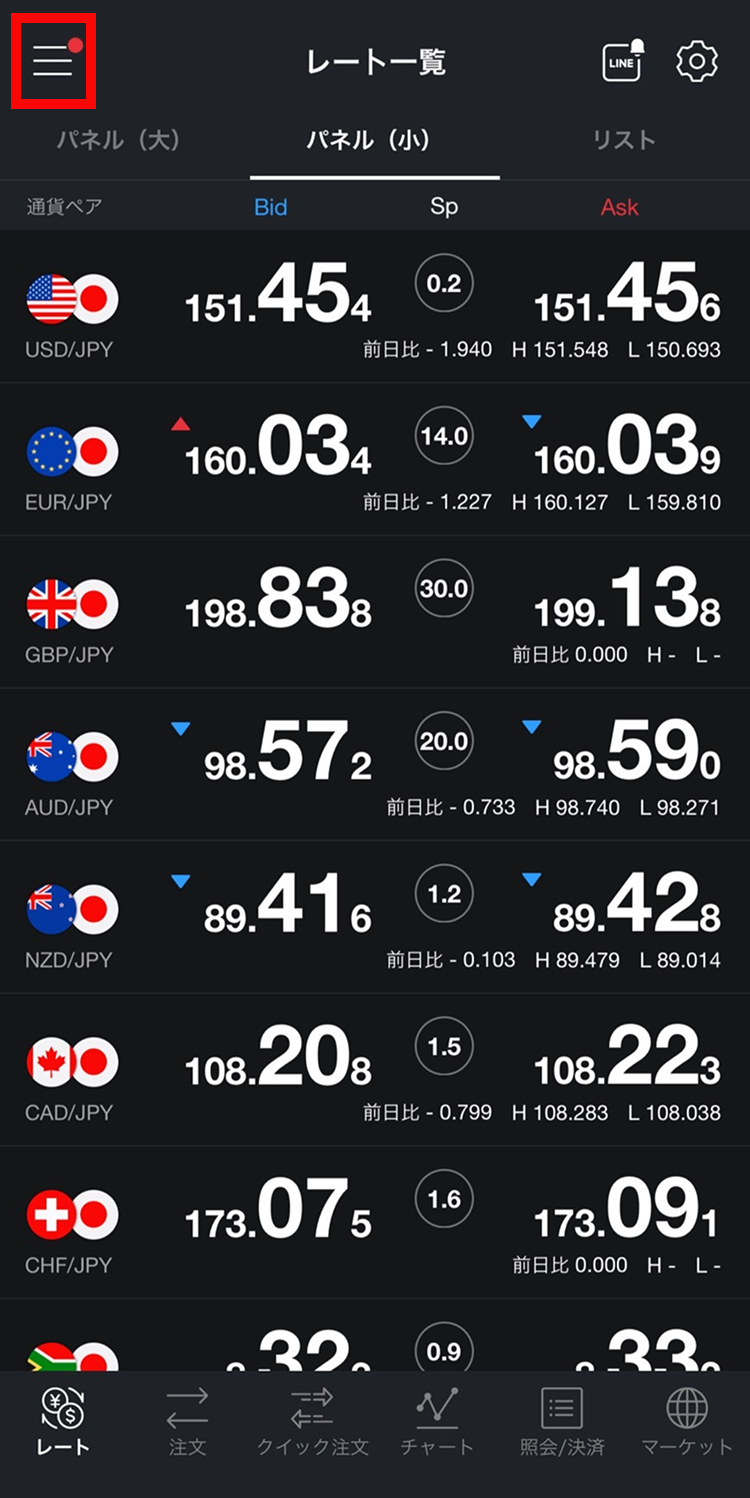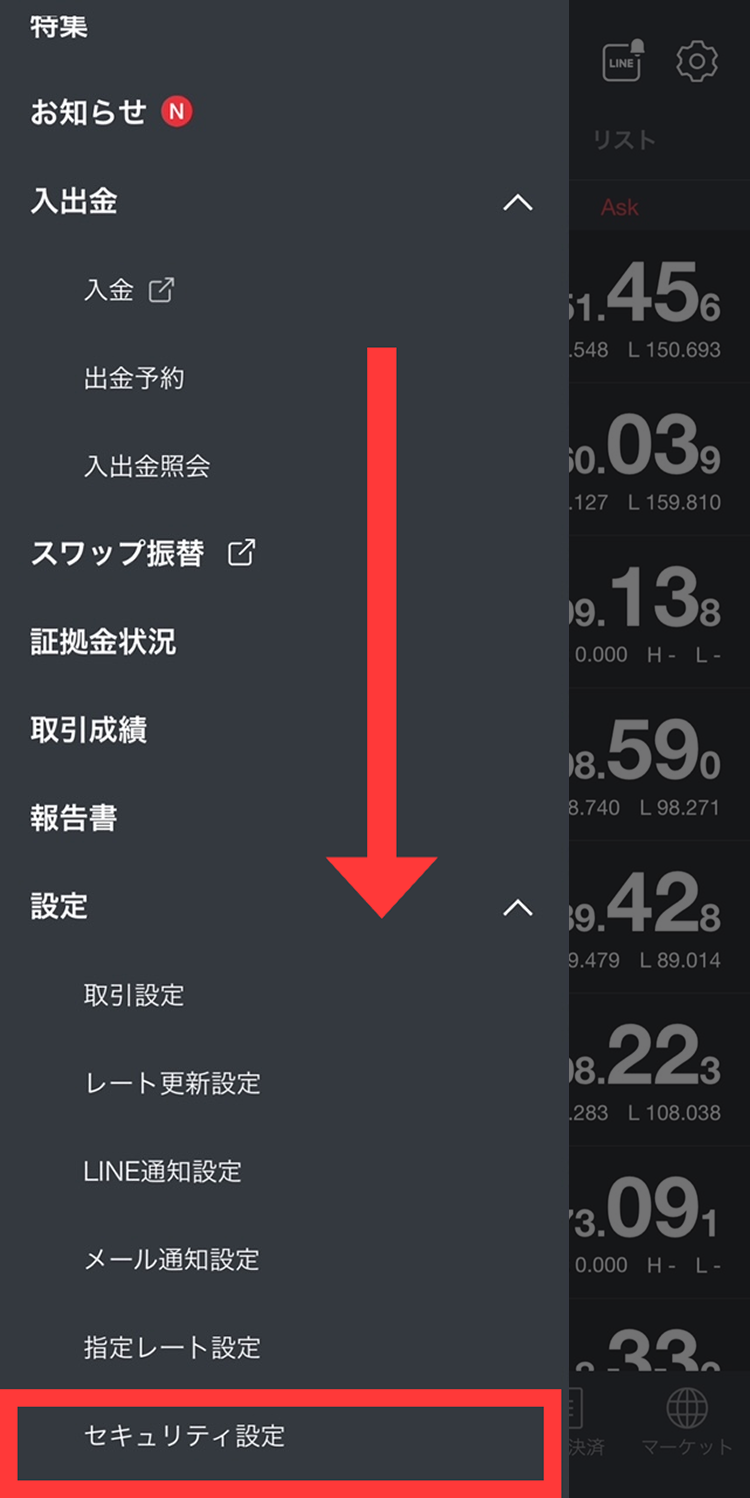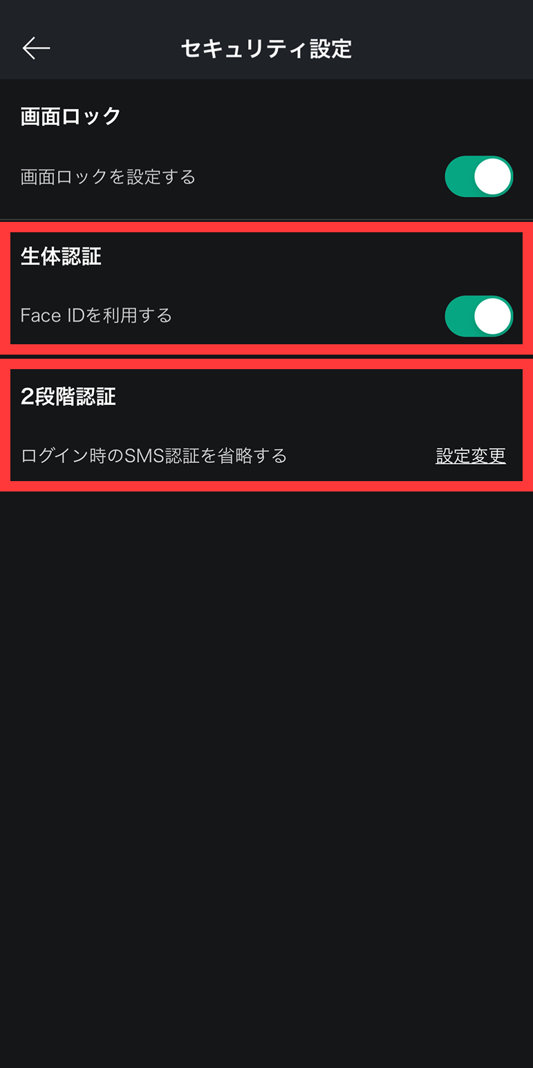 LINE FX アプリにおいてログイン後に以下の手順で生体認証とSMS認証が設定変更が可能です。ログインの手間を省きたい場合などにご活用いただけます。