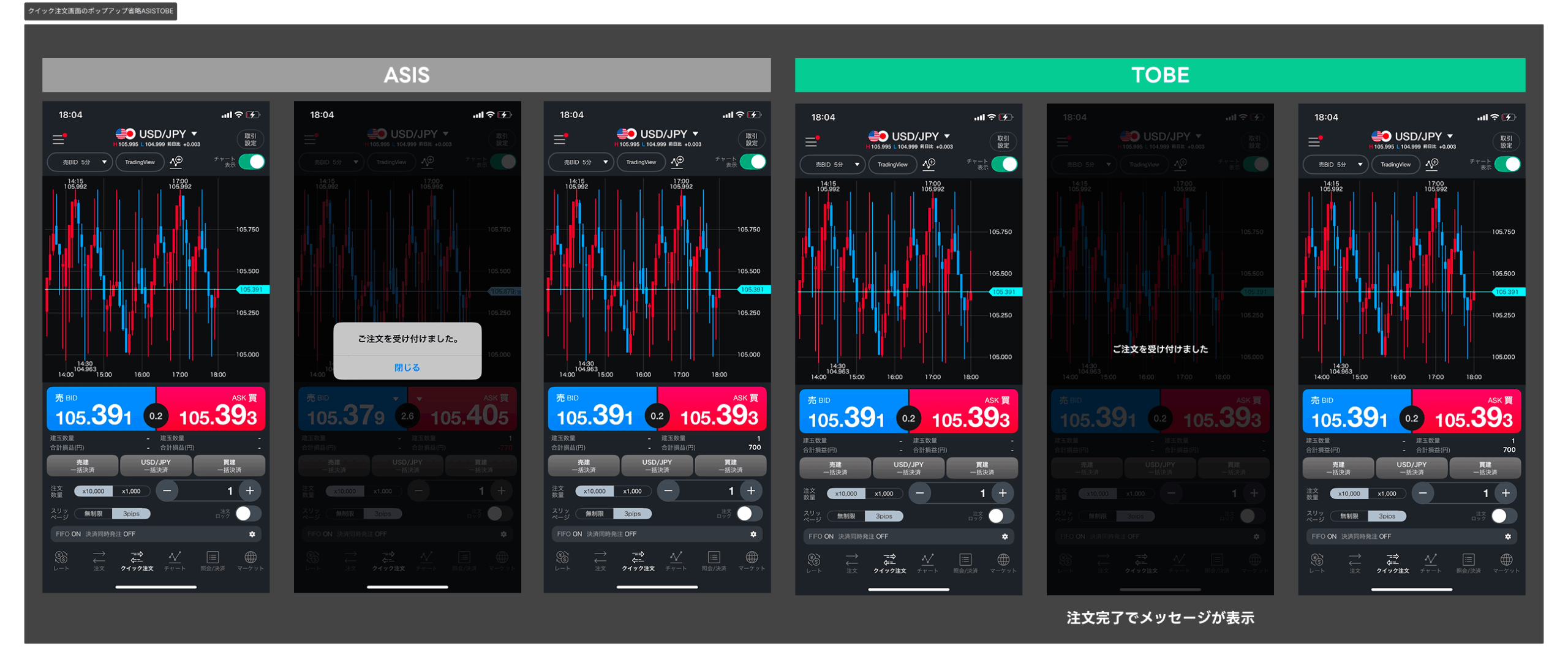 LINE FXアプリ|通常注文完了時のポップアップ表示内容を変更