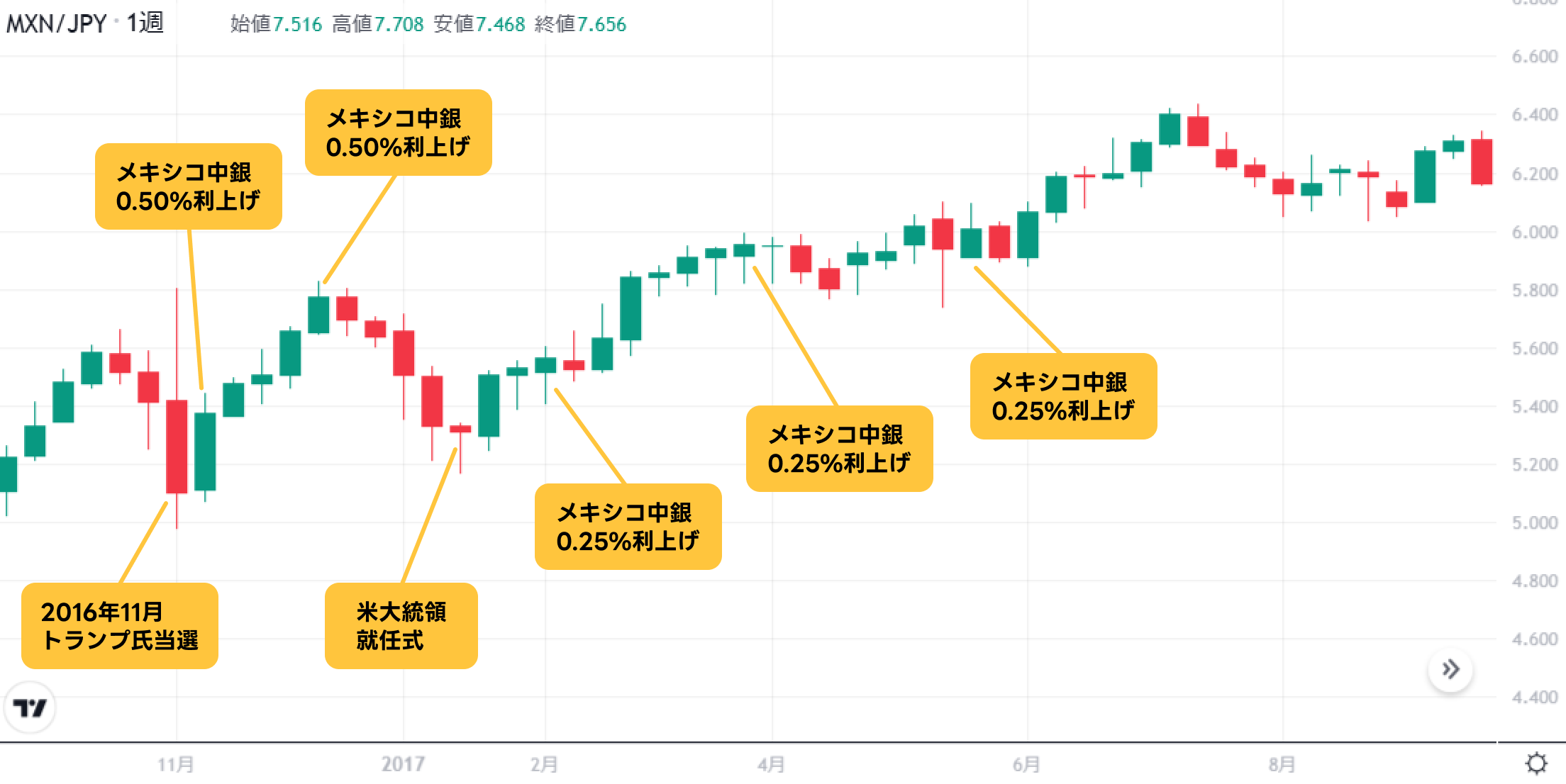 トランプ氏当選以降のMXN/JPY