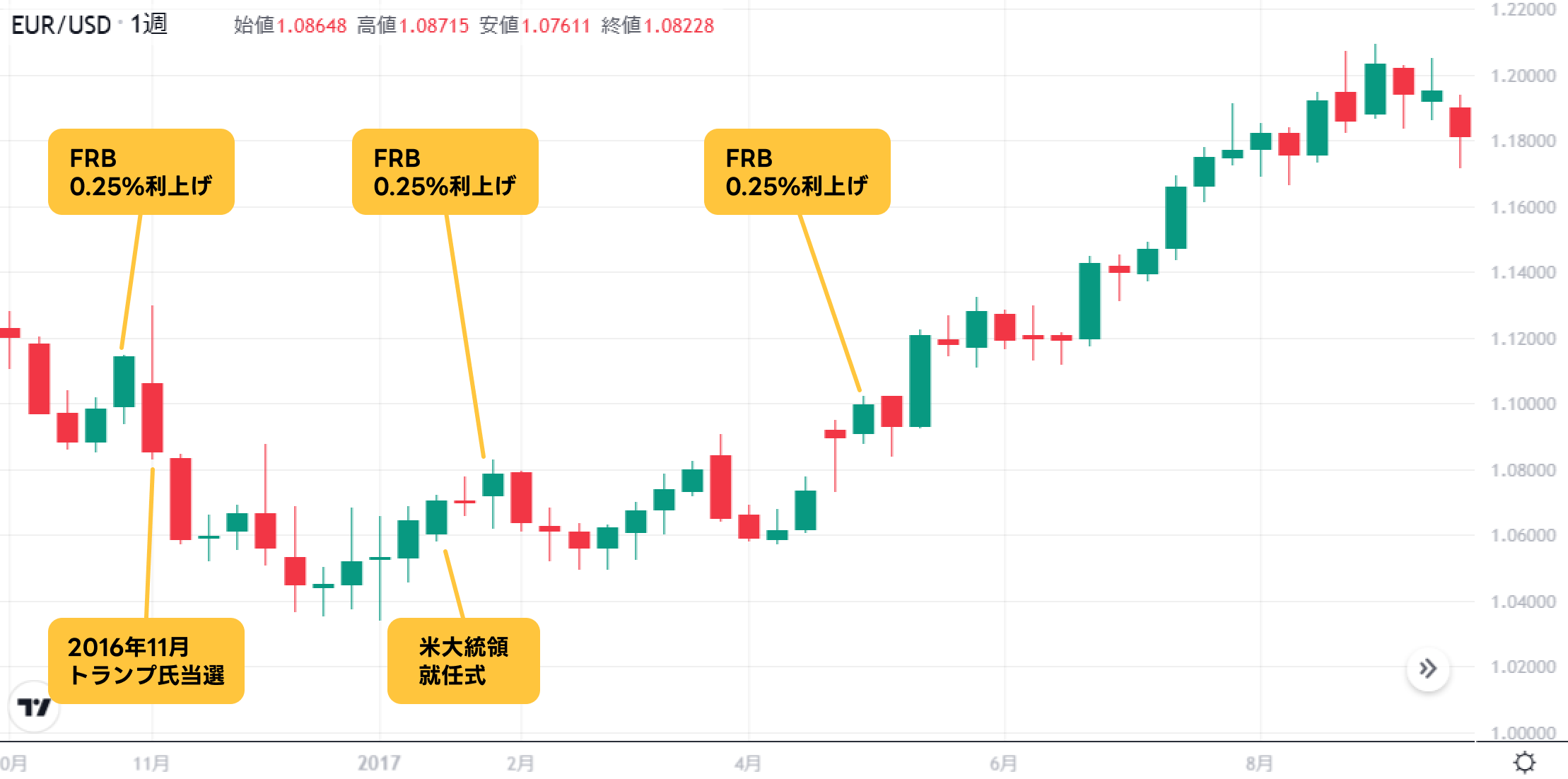 2016年10月~2017年9月のEUR/USDの週足チャート