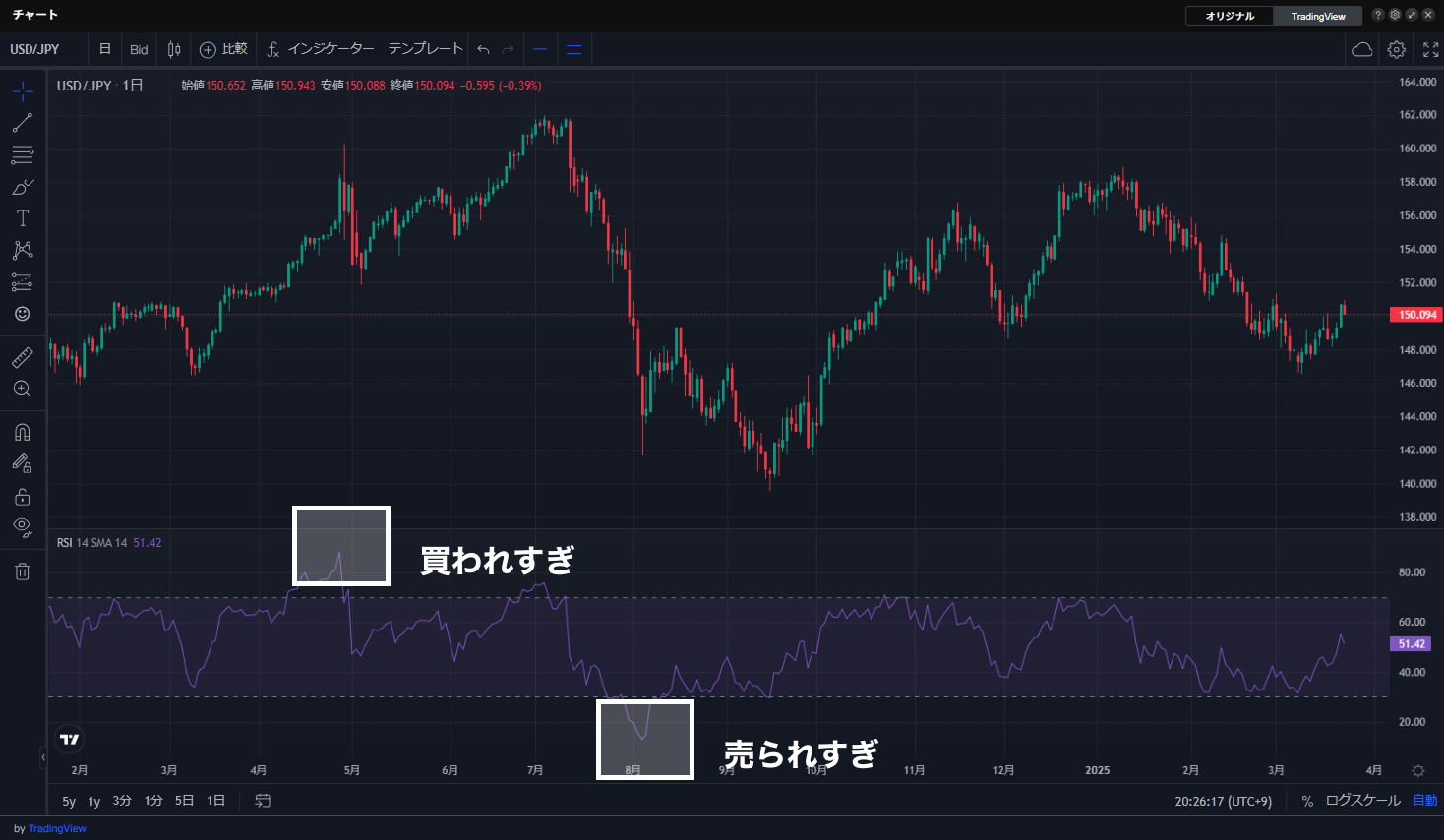 以下の画像下部がRSIです。